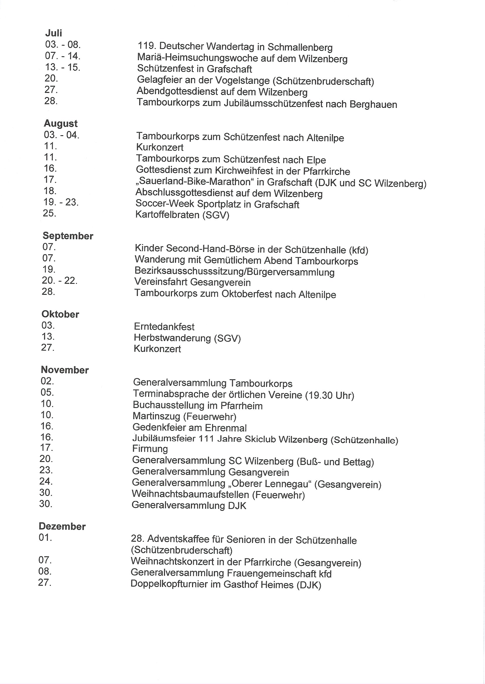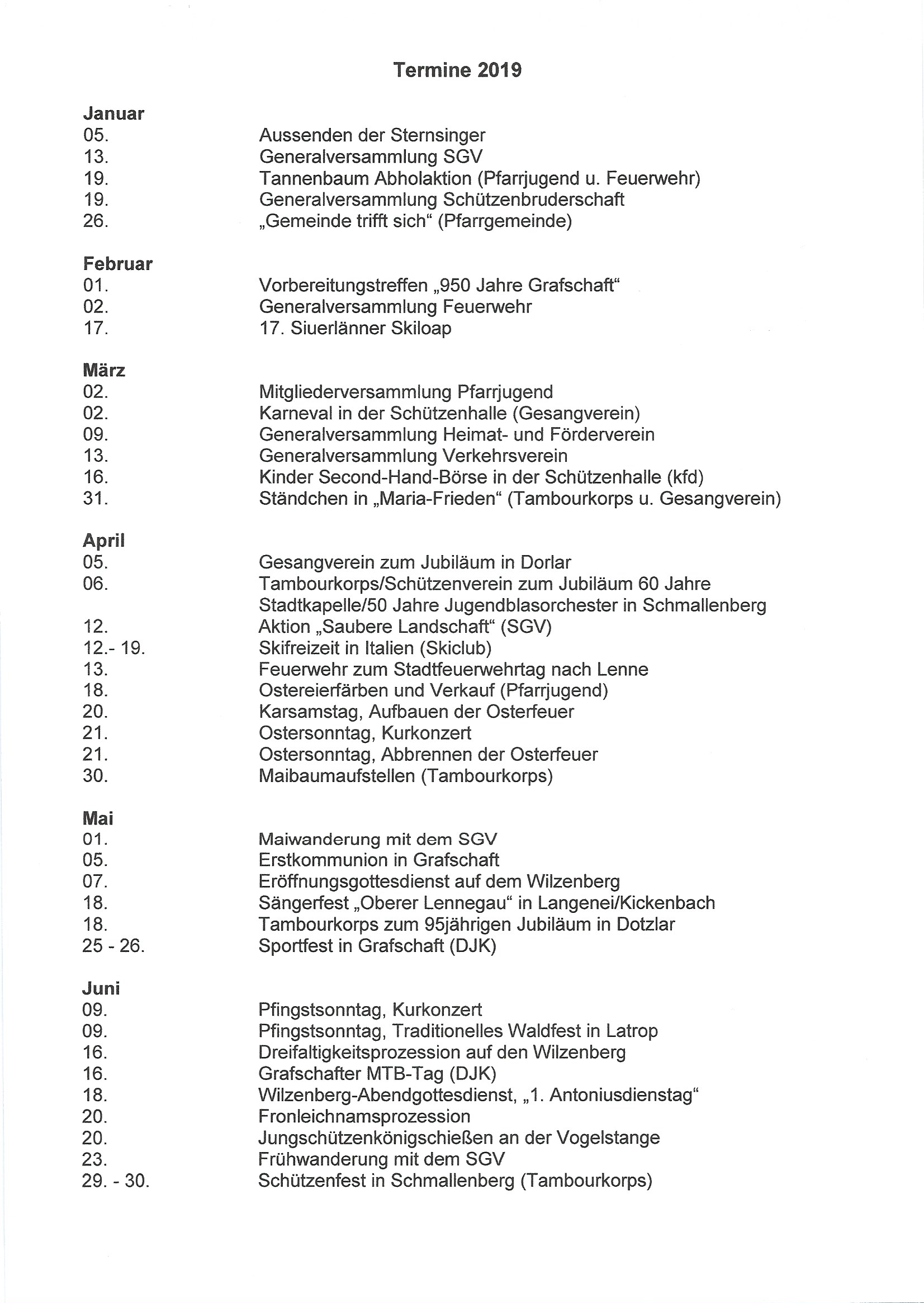 Dorftermine 2019
