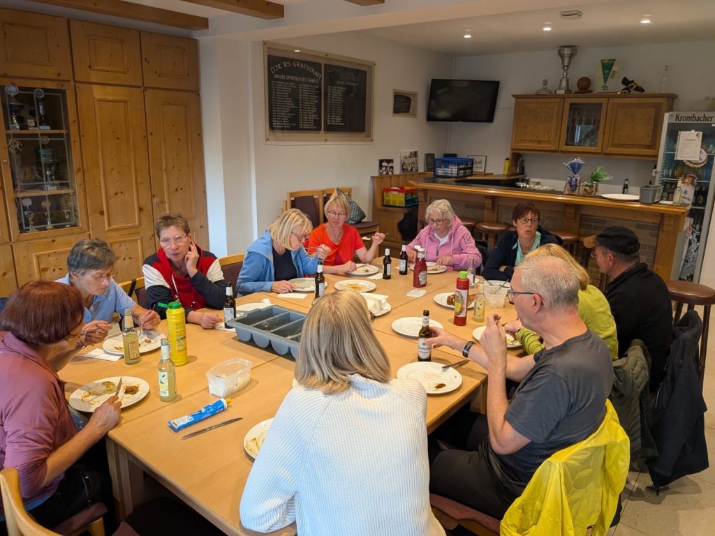 Am 03.09.2025 lud die DJK ihre Gesundheitssport-Gruppe zu einem gemütlichen Grillabend am Sportheim in Grafschaft ein. Elf Mitglieder folgten der Einladung und genossen einen entspannten Sommerabend in geselliger Runde. Frisch gegrillte Würstchen und Steaks sowie gut gekühlte Getränke rundeten den Abend kulinarisch ab. Die DJK freut sich schon jetzt auf den nächsten Grillabend mit der Gesundheitssport-Gruppe, die ein fester Bestandteil des Vereinslebens ist!